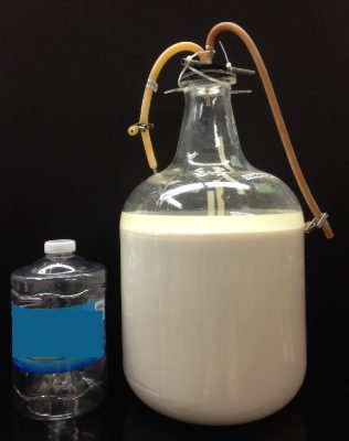 20L of fermentation mixture ready for nanoparticle separation. Photo courtesy of Oak Ridge National Laboratory.