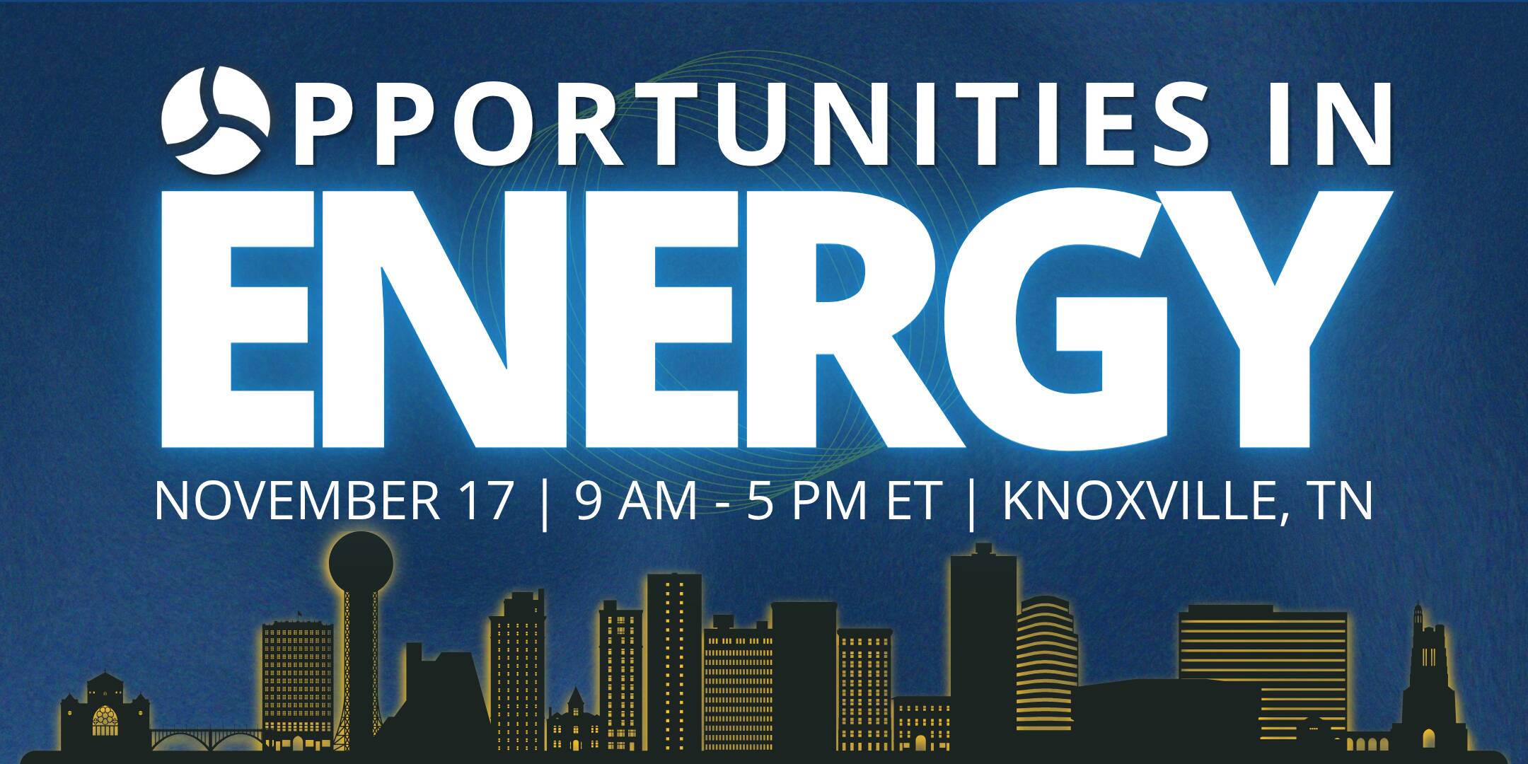 The Tennessee Advanced Energy Business Council will hold its annual Opportunities in Energy event on Tuesday, November 17, from 9 a.m. until 5 p.m. ET at the Crowne Plaza in downtown Knoxville.