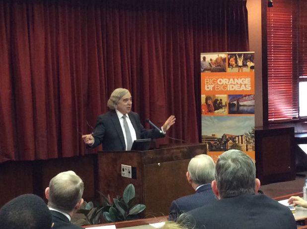 U.S. Senator Lamar Alexander introduced U.S. Department of Energy Secretary Ernest Moniz to a packed auditorium at the University of Tennessee Law School by telling the audience, “he likes to be called Ernie.”  It’s fitting. Especially for a man whose most distinguishing feature is his wavy mop of mostly white hair. He once told the Knoxville News Sentinel he thought all the attention paid to his hair was, “absolutely excellent!”
